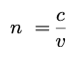 L’indice de réfraction (noté n) propre à cette substance se définit par le rapport de la vitesse de la lumière dans le vide (notée c) à la vitesse de la lumière dans la substance considérée (v).